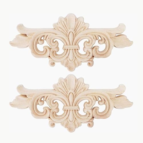 Wifehelper 2pcs Appliques Sculptées - Fleurs Sculptées Longues Appliques Onlay Sculpture Decal Meubles Porte Décoration Maison(16 * 7.5CM)