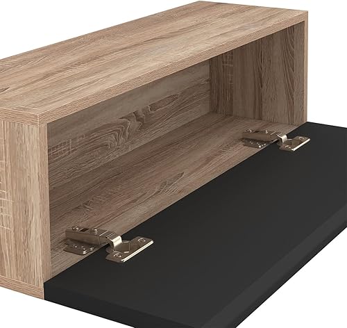 IDMarket - Lot de 2 Consoles suspendues étagères murales ELYOS 1 Porte Bois et Noir