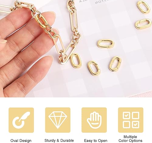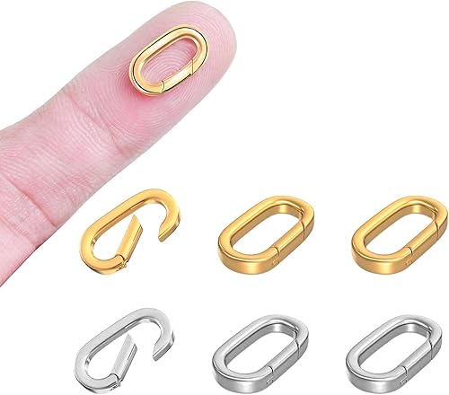 NATOSU Lot de 6 fermoirs mousquetons ovales en or 18 carats - Fermoirs et fermoirs pour collier - Fermoir à ressort - Pour la recherche de bijoux, colliers et bracelets