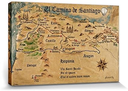 1art1 Chemin De Saint Jacques Poster Impression sur Toile El Camino De Santiago Anno 1445, Jon Mellenthin Affiche Murale XXL Encadrée | Tendue sur Cadre en Bois | Tableau 30x20 cm
