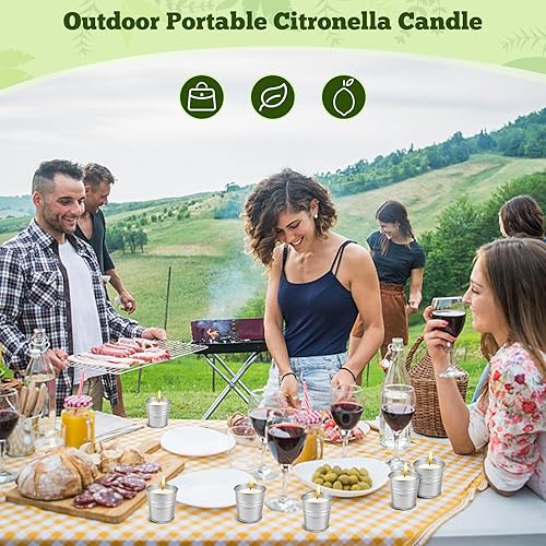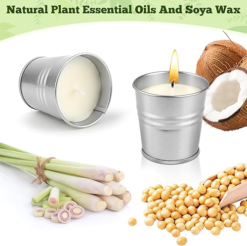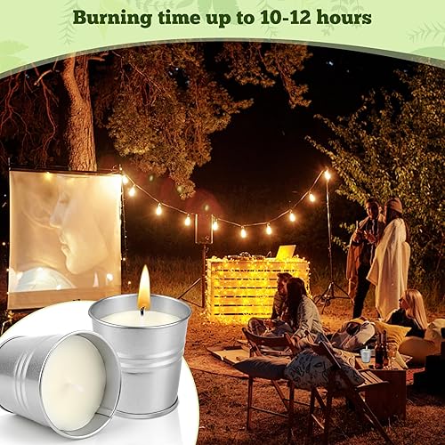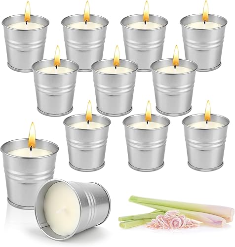 Lot de 12 bougies à la citronnelle d'extérieur - Bougies chauffe-plat dans un seau en métal - Cire de soja naturelle - Citron - Pour l'intérieur, le jardin, le camping, le pique-nique - Pour jardin,