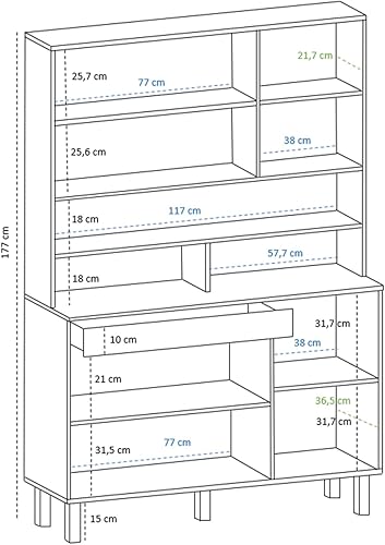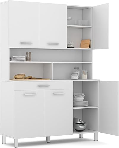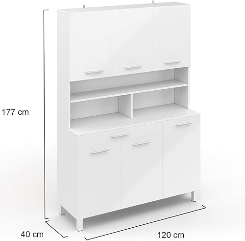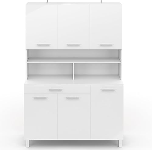 IDMarket - Buffet de cuisine 120 CM CINA 6 portes + tiroir blanc et blanc brillant