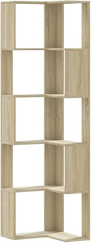 vidaXL Bibliothèque d'angle à 5 Niveaux chêne Sonoma Bois d'ingénierie, étagère à Livres d'angle, vitrine d'angle, Armoire d'angle