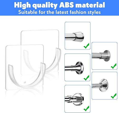 Lot de 4 supports de tringle à rideaux adhésifs sans perçage - Transparents - Support mural invisible pour tringles de tension - Supports de tringle à rideau de douche pour mur (tringle non incluse)
