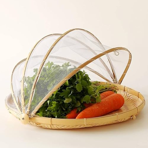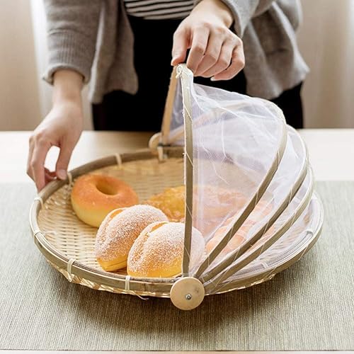 Panier de tente en bambou, panier tissé anti-moustiquaire, panier de rangement pour légumes, fruits, pain, pelle à poussière, panier à fruits et légumes (M)