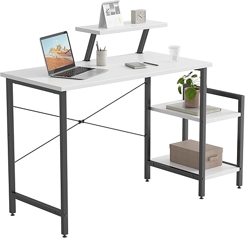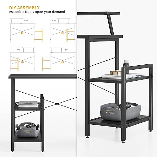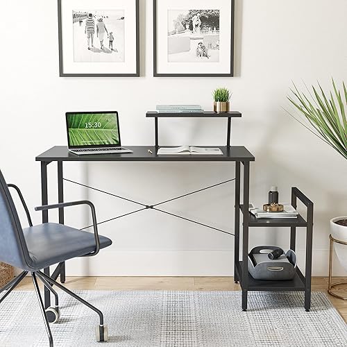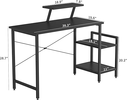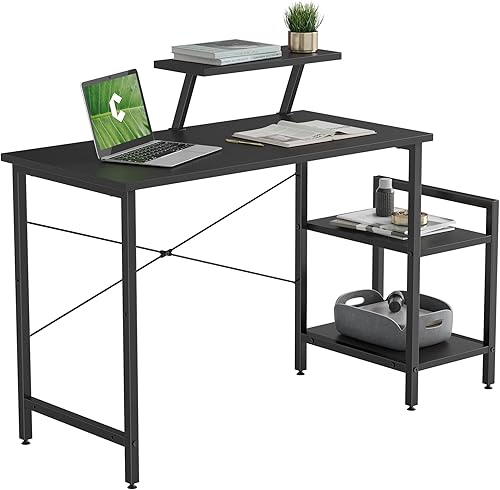 CubiCubi Petit Bureau d'ordinateur Informatique 80 * 50 cm - PC Gaming Table Stable avec 2 Étagères Mobiles et Support d'écran, Montage Facile pour Travailler Etudier Jouer Chambre Domicile, Noir