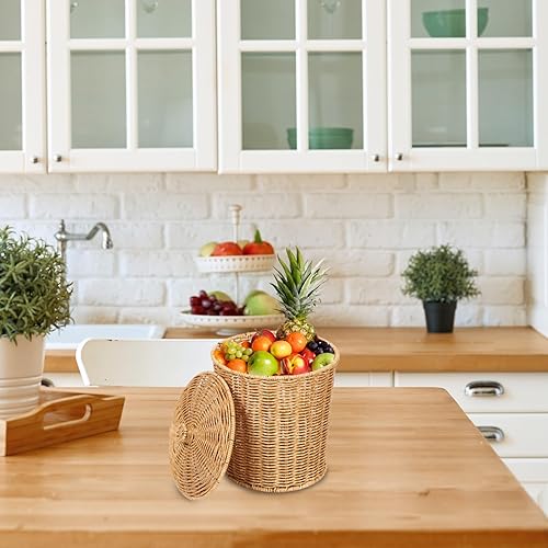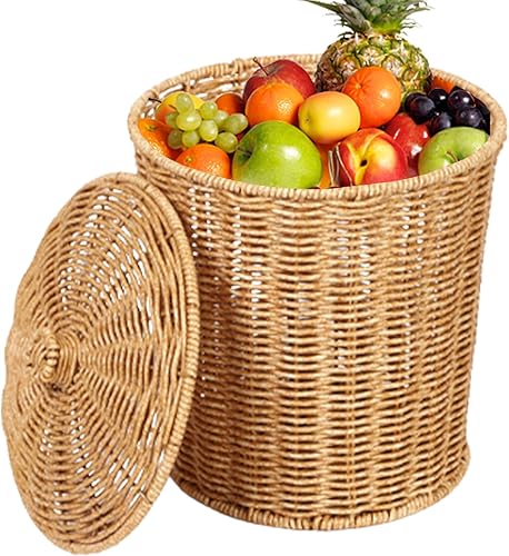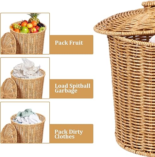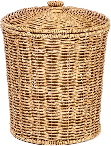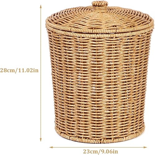Neroyaner Panier en Osier avec Couvercle 9x11 Pouces Corbeille à Papier Corbeille à Papier de Style Simple Poubelle en Osier paniers à Linge tissés Ronds pour Chambre à Coucher Salon et Salle de Bain