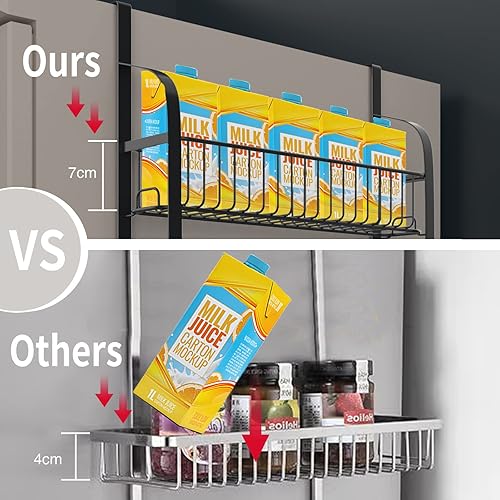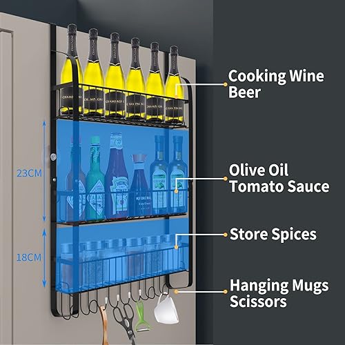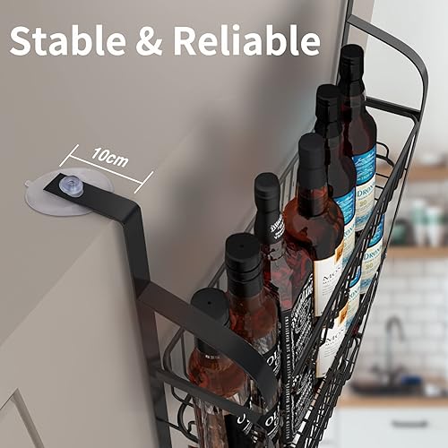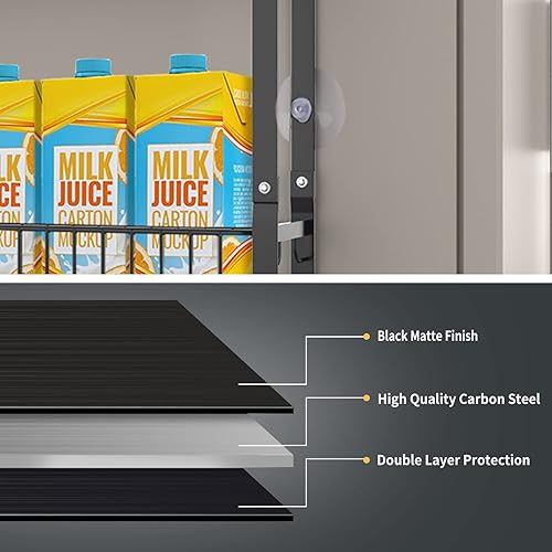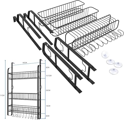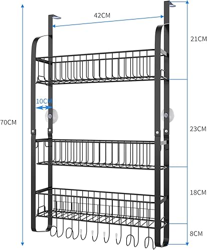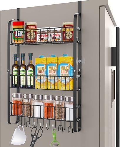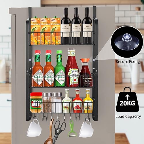 Yiomxhi Etagère Réfrigérateur, Porte-Épices de Réfrigérateur, 2 Niveaux Étagère à Épices avec 8 Crochets, Multifonctionnel Étagère de Rangement pour Frigo Cuisine sans Perçage, Noir