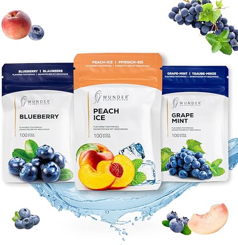 Wunder Cure-Dents avec Saveur – Set de 3 Boîtes - 100 Cure-Dents par Boîte - 3 Saveurs Uniques - Parfait pour l’Haleine Fraîche et le Soin Oral