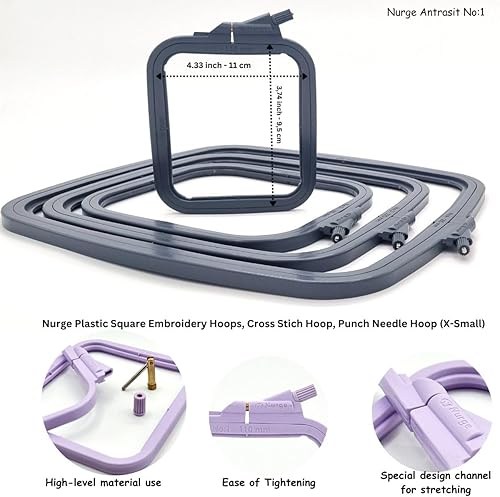Nurge Lot de 4 cerceaux à broder carrés en plastique anthracite