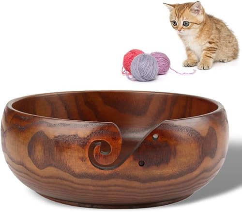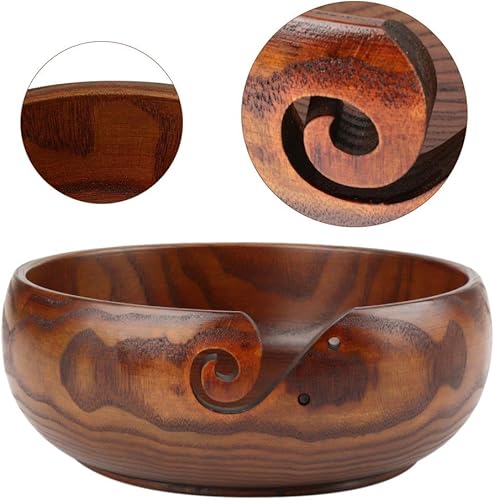 Taidda de Fin d'année Bol de Fil, Bol à Tricoter léger Anti-Papillon Naturel Fait à la Main Bol de Fil en Bois conçu pour Tricoter Crochet Home Decor 18-20CM