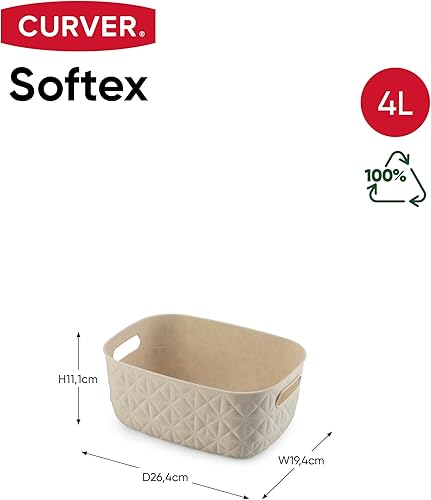 CURVER Panier de rangement Softex 4L - Design Élégant - Léger, Empilable et Pratique - 100% recyclé - 26 x 19 x 11 cm - Blanc cassé