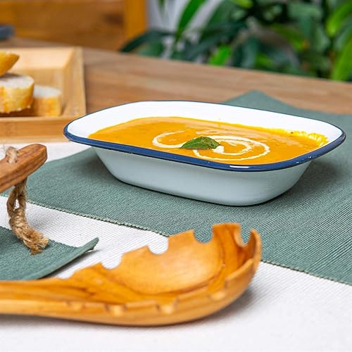 Argon Tableware Plat à Tarte en émail Blanc - Plats de Four en Plein air de Camping en Plein air - 20cm - Navy