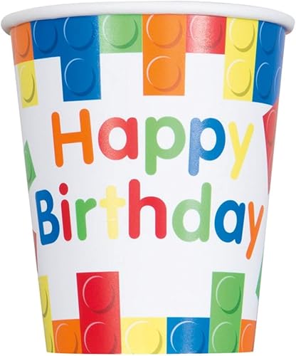 Unique- Gobelets en Carton-266 ML-Fête d'anniversaire à thème de Blocs des Constructions-8 Pièces (Lot de 1), 82213, Multicolour