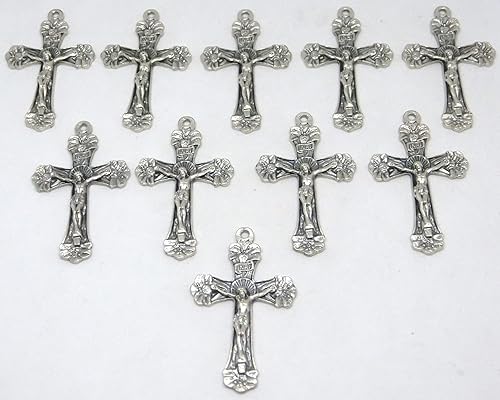 GTBITALY LR28A Croix avec Christ Jésus inri pour chapelet en argent galvanisé pour 10 pièces, mesure 4 cm