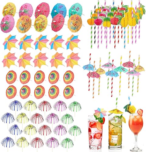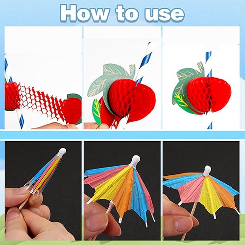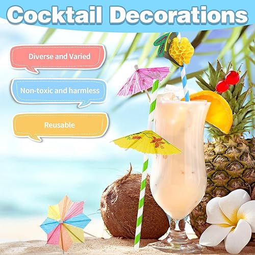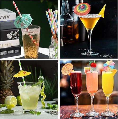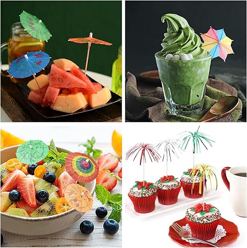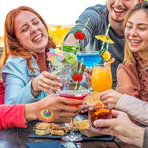 RAFIYU 90 Pièces Décorations de Cocktail, Papier Cocktail Parapluies, Parasol Cocktail Paille, Bâtons de Feu D'artifice, Réutilisables pour Fête de Mariage Bar Boissons Fruits Desserts Décorations