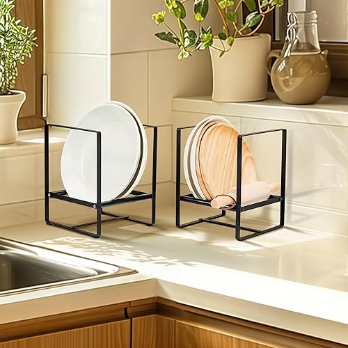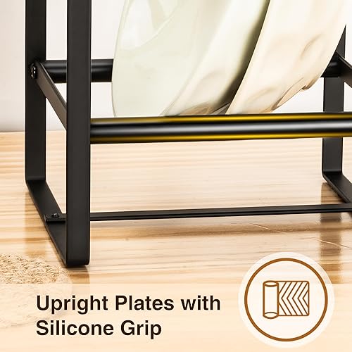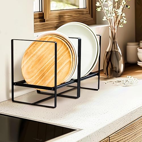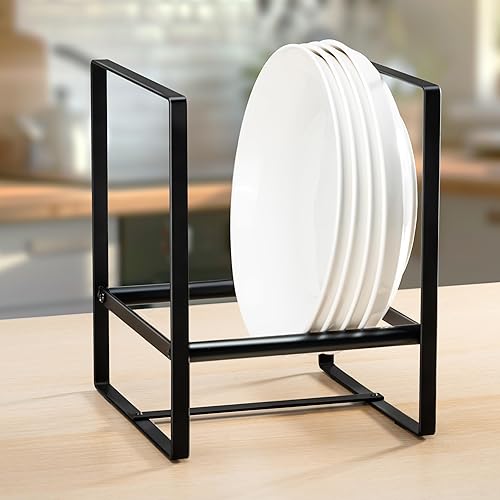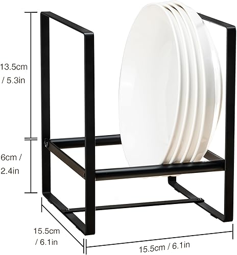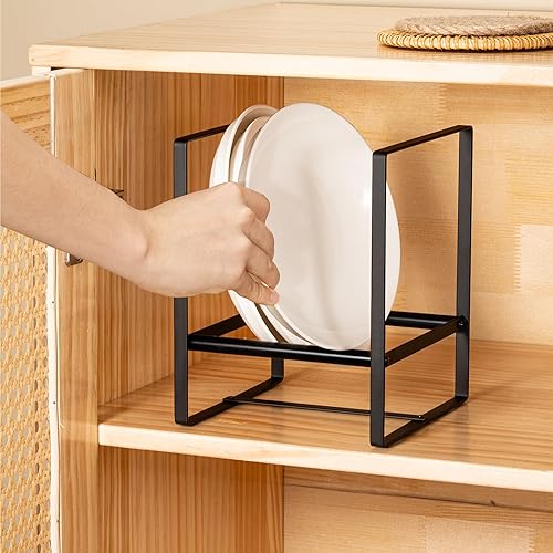 Josmimic 1 organiseur d'assiettes pour armoire économiseur d'espace, supports d'assiettes de grande taille pour assiettes à dîner, étagères verticales pour armoires (15 x 15 x 19 cm, noir)