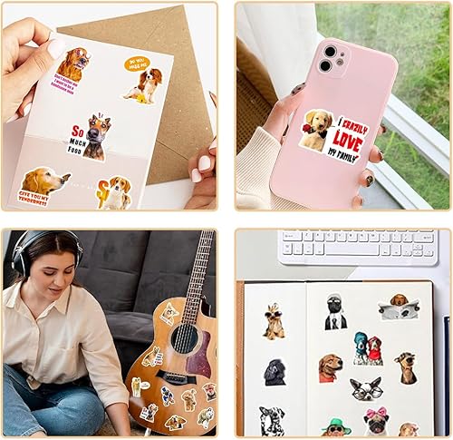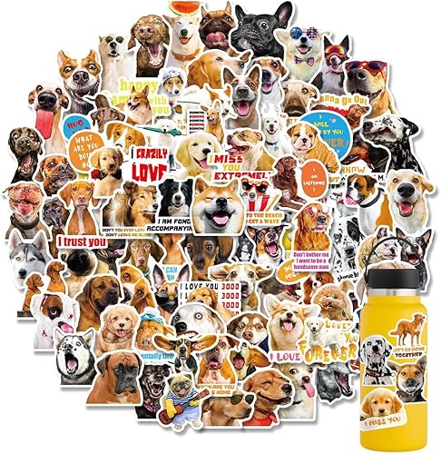 Lot de 100 Stickers, Autocollants Amusants en vinyle imperméable pour les amoureux des chien, bouteille d'eau, scrapbooking, téléphone, cadeau pour adultes, enfants, adolescents (Forme de Chien)