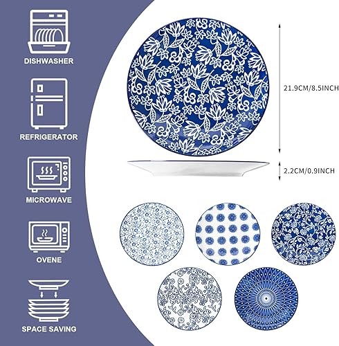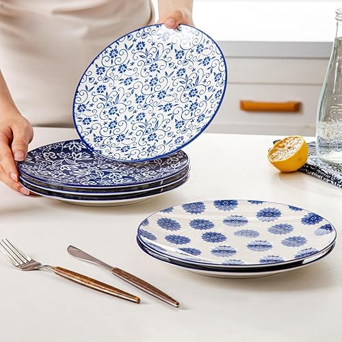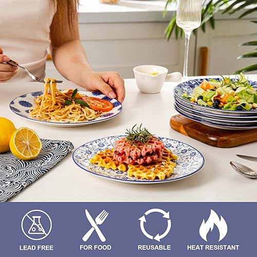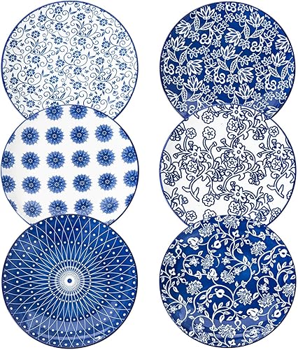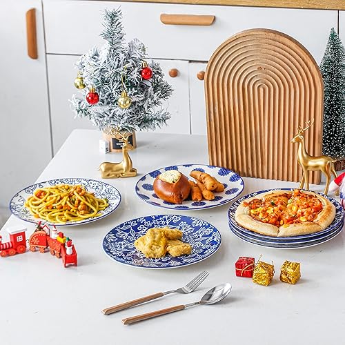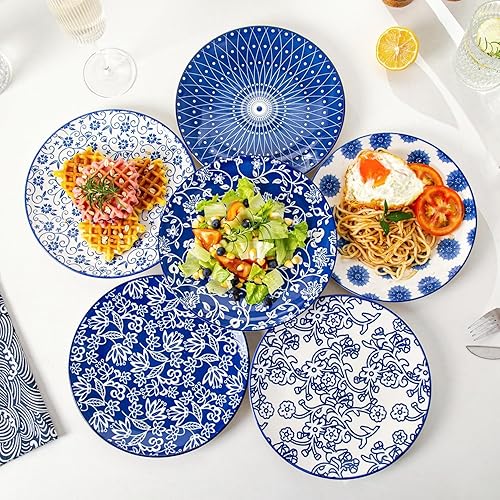 Cerkik Lot de 6 petites assiettes à salade rondes en céramique de 21,6 cm pour cuisine, dîner, pâtes, apéritif, sandwich, porcelaine résistante aux rayures, passe au micro-ondes, au four et au