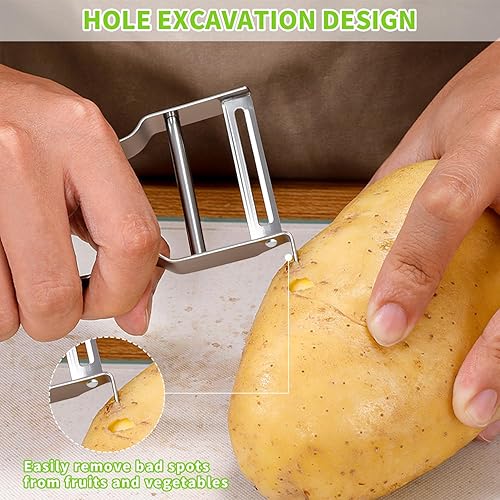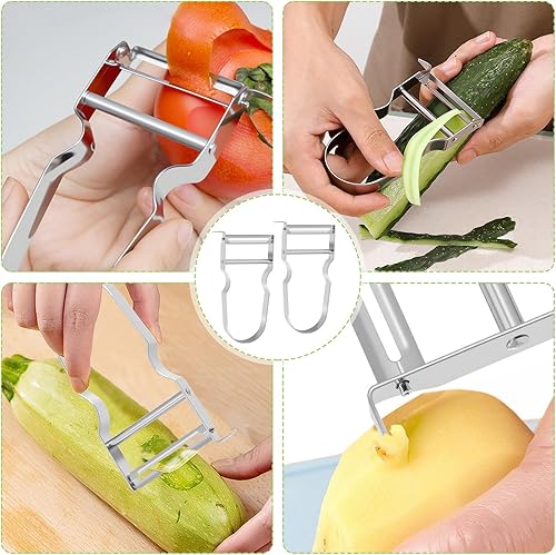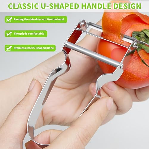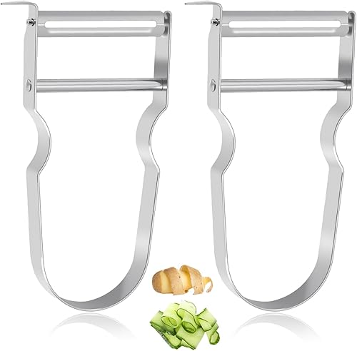 Royomal 2 PCS Éplucheur Universel, Éplucheur de Forme U, Eplucheur Légumes, Éplucheur de Légumes et d'Asperges, Acier inoxydable, Argenté, pour Éplucher Fruits et Légumes
