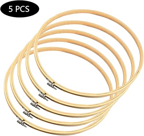 Belvanr Cercles à Broder 5 Pièces Cercle à Broder Bambou Tambour Broderie Cerceaux de Broderie Rond Cercle Point de Croix Anneau Cerceau Broderie Cerceau Bambou pour la Couture Manuelle
