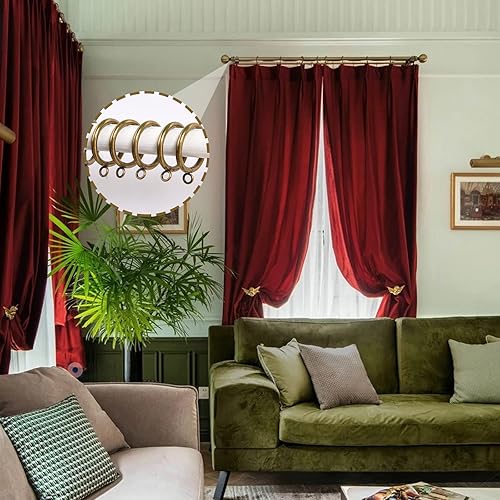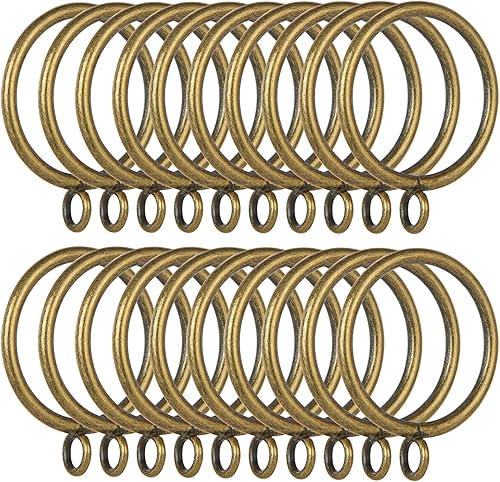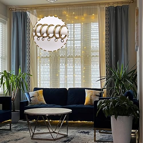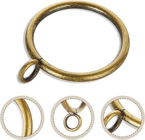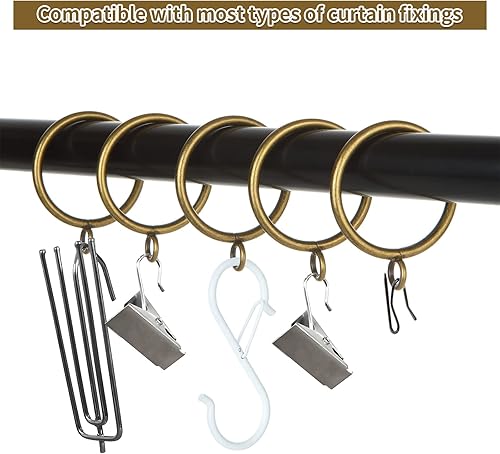 FWEEK Lot de 50 anneaux de rideau en métal doré mat de 38 mm avec crochets – Anneaux de suspension lisses pour tringles jusqu'à 35 mm de diamètre