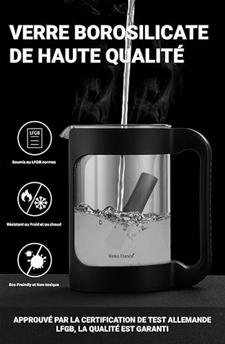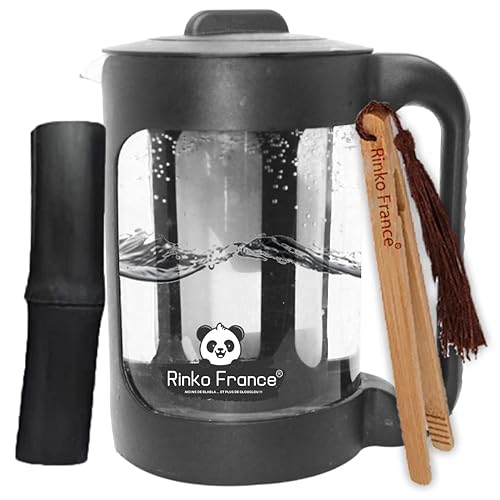 RINKO FRANCE |Pack Modèle X3 Carafe d'Eau 1,5 L avec Un Binchotan Naturelle Offert| Charbon Actif 100% BIO Purification Naturelle de l'eau du Robinet