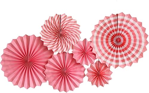 Lot de 6 éventails en papier - 20 cm, 30 cm, 40 cm - À suspendre - Décoration de fête de mariage - Pour anniversaire, fête, mariage, Nouvel An, baby shower, rose