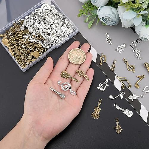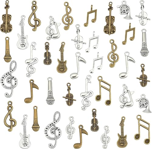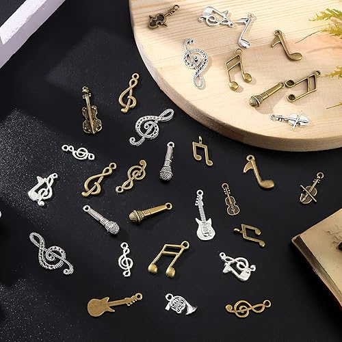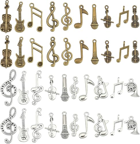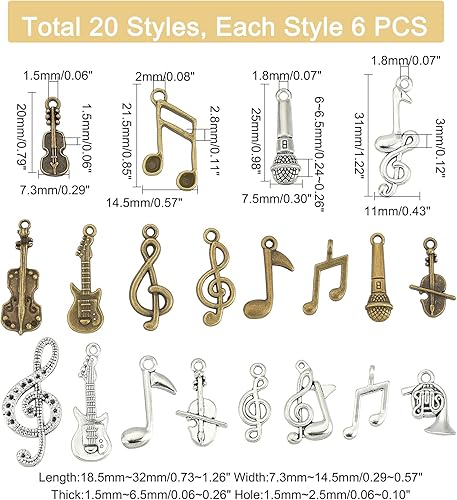 PH PandaHall 20 Styles Musique Breloques, 120pcs Instrument de Musique Notes Symbole Pendentifs Musique Éléments Charme Microphone Violon Guitare Charmes pour Collier Bracelet Boucles D'Oreilles
