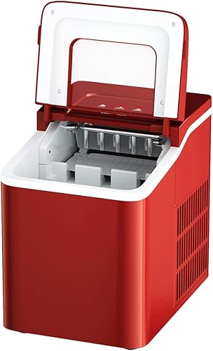 DREAMADE Machine à Glaçons avec Fonction de Nettoyage, Appareil de Préparation de Glace 120W avec Capacité 1,6L, Idéal pour Maison,Bureau,Café (Rouge)