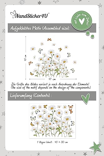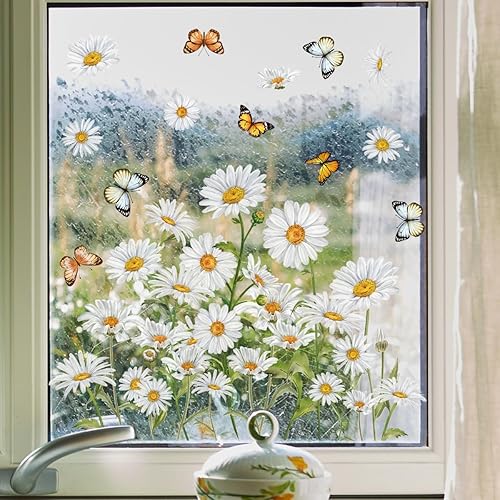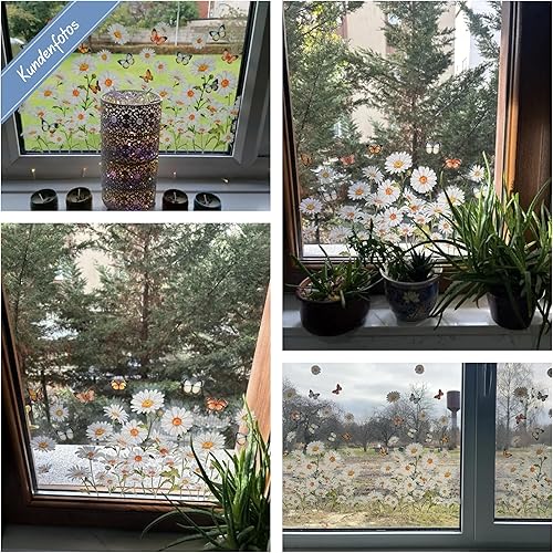 WandSticker4U®- Stickers fenêtre fleurs MARGUERITES blanc réutilisable (47x40 cm) I Stickers vitres décoratifs fleurs printemps été I Autocollant fenêtre salon chambre enfant cuisine (non adhésif)