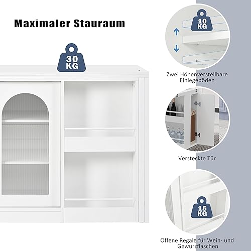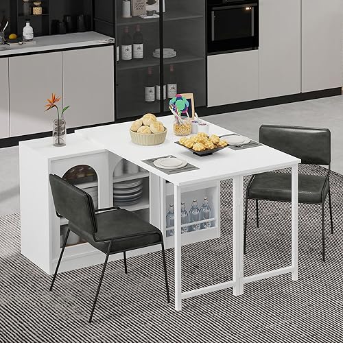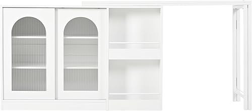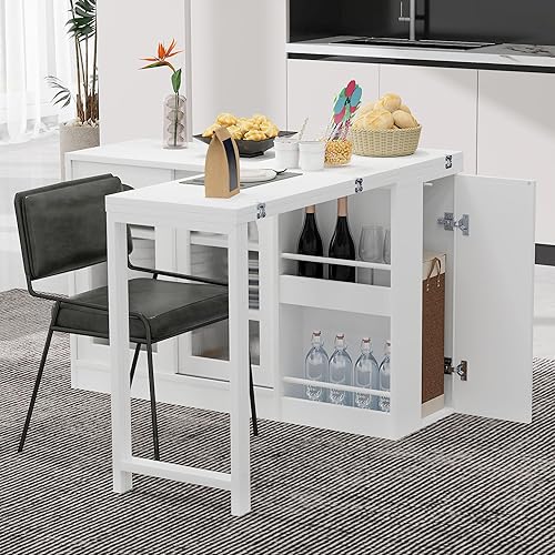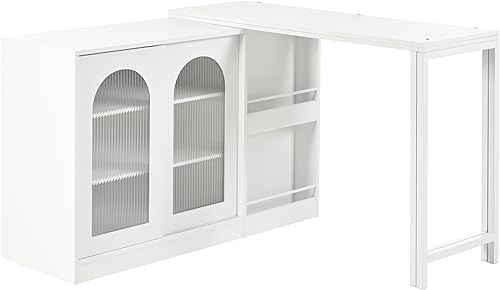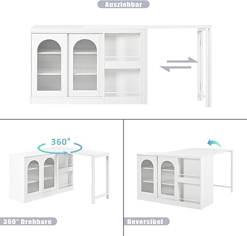 Winmores Table de bar moderne extensible rotative à 360° avec espace de rangement réversible buffet bar avec porte en verre - Table de bar pour cuisine, café, bar (blanc)