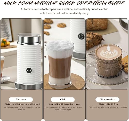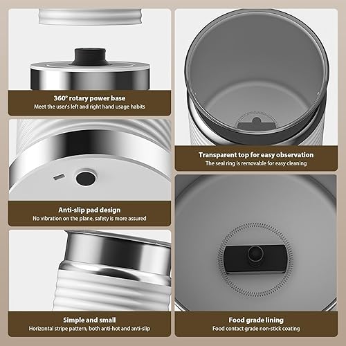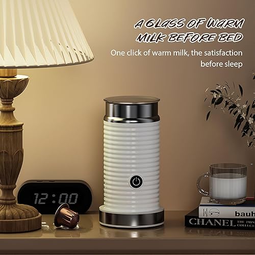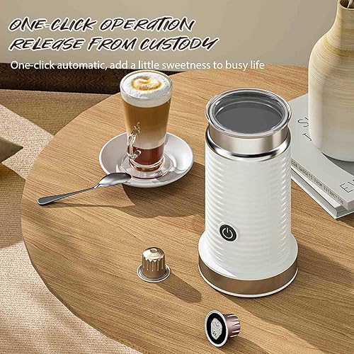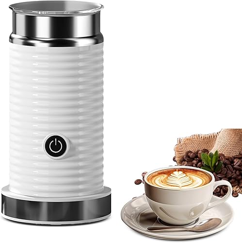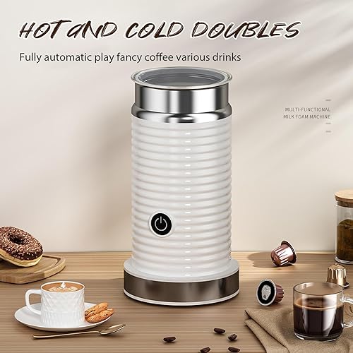 Mousseur à lait électrique 4 en 1, mousseur à lait chaud et froid, machine à mousse de lait automatique, fonctionnement silencieux, pour café, cappuccino (blanc)