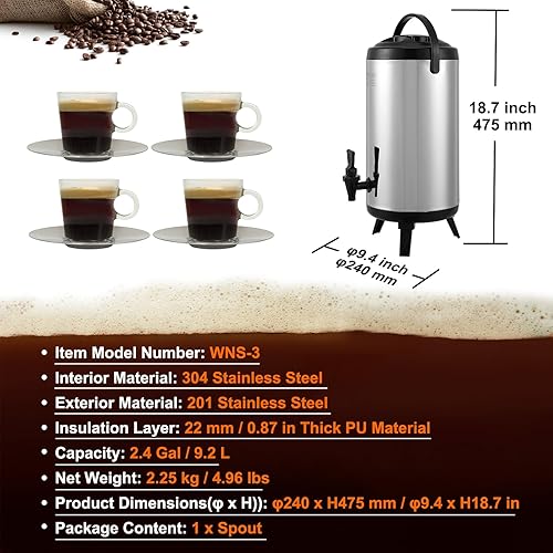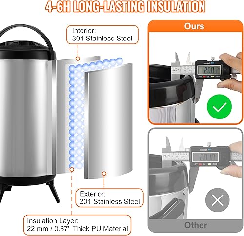 VEVOR Distributeur de Boissons Isotherme 9,2L Distributeur d’Eau Chaude et Froide Non Électrique Inox Alimentaire Conservation 4-6H Conteneur Isotherme avec Robinet Portable pour Camping Restauration