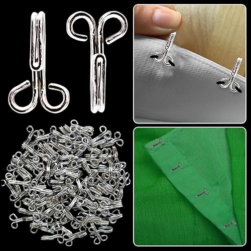 Event Decor Shop Lot de 100 crochets à coudre argentés | 12 mm en laiton antirouille pour vêtements, soutien-gorge, jupe, robe, pantalon, projets de couture, fermetures sécurisées pour réparation de