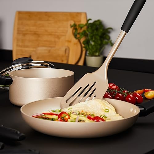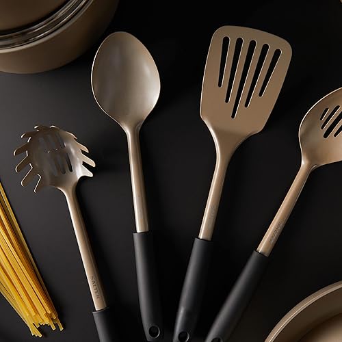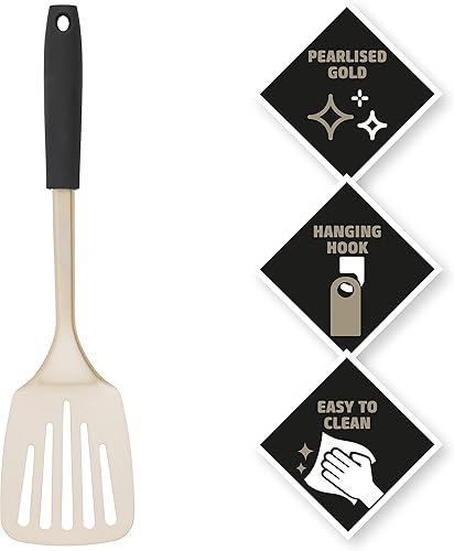 Salter BW11130EU7 Cuillère à Spaghetti, Ustensile de Cuisine Multifonction, Fourchette pour Pâtes, Design Olympus, Servir les Aliments, Crochet de Suspension, Facile à Nettoyer, Noir/Or