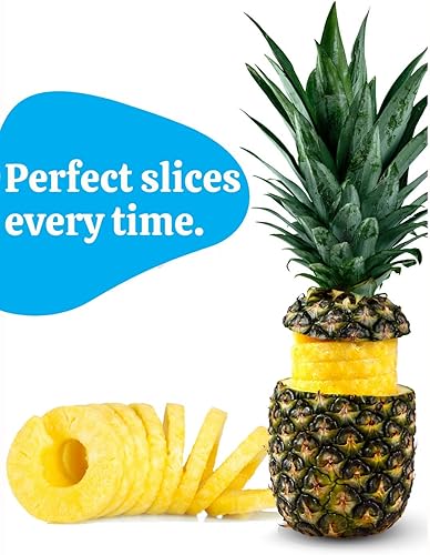 Coupe ananas en acier inoxydable avec un livre de recettes et une garantie d'un an - Outil pour enlever les noyaux avec poignée détachable - éplucheur ananas à fruits rapide et facile à utiliser.