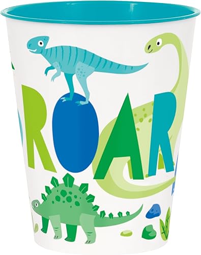 Unique 75807 Lot de 4 gobelets réutilisables en plastique Motif dinosaure Bleu/vert 295 ml