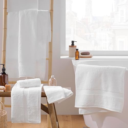 Douceur d'Intérieur, Drap de Bain (90 x 150 cm) Elegance Blanc, 100% Coton Uni