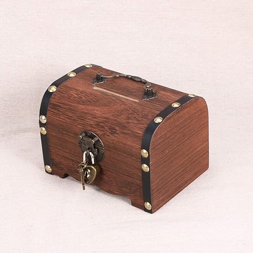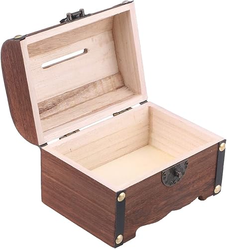 SEWACC Boîte de Monnaie Vintage à Trésor en Bois avec Coffre à Trésor Boîte de Rangement de Poitrine Rétro Piggy Bank Board Sauveture Boîte de Bijoux Décoratif pour La Maison