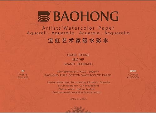 BAOHONG Bloc de papier aquarelle 20 feuilles, qualité artiste, 100 % coton, 63,5 kg/300 g/m², 36 x 26 cm, pressé à chaud