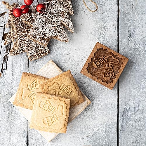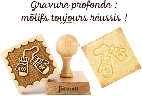 Folkroll 13271 – Tampon à biscuits – Tampon à pâtisserie décoré carré, motif cheval à bascule – bois de hêtre – 55x55mm