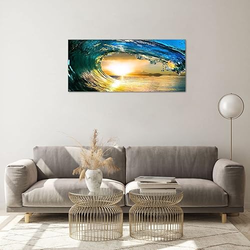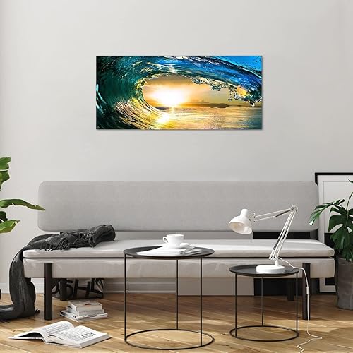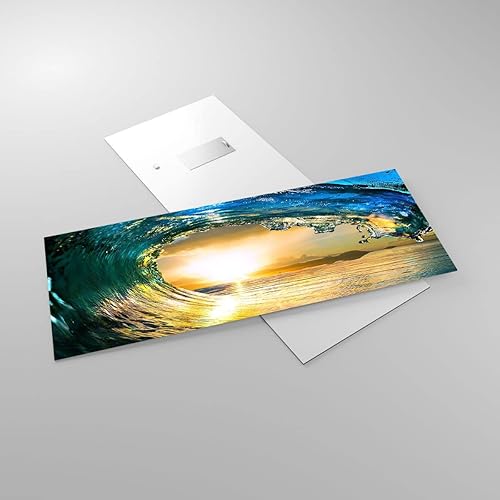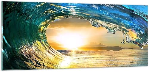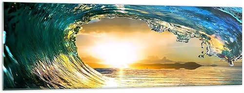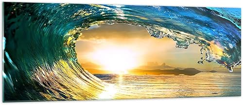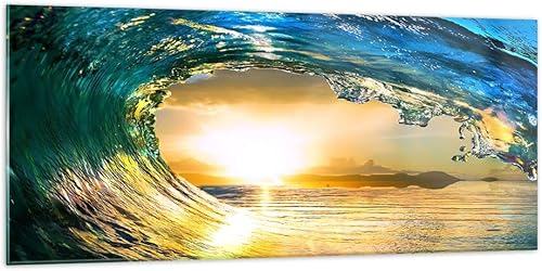 Moderne Impression sur Verre 160x50cm Image Tableau en Verre Decoration Murale Océan Vague Soleil climat Grand XXL Tableaux Decoratifs Muraux Chambre Panoramique Deco Cadre Salon Art GAB160x50-2779