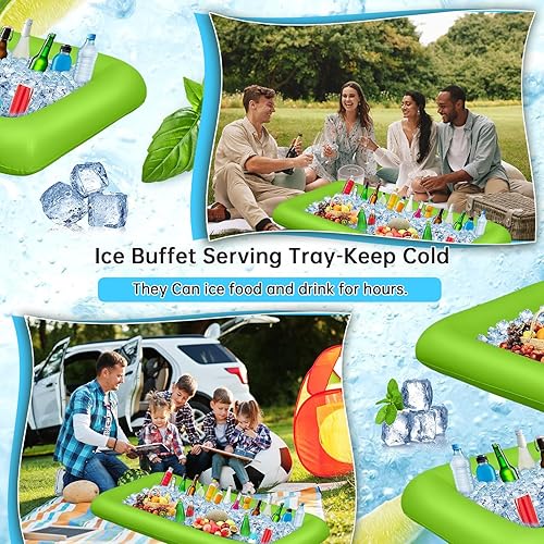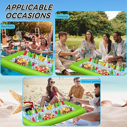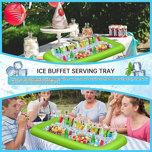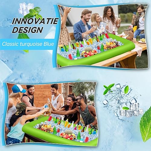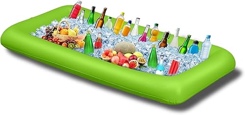 XPAPOV Grand bac à glaçons gonflable flottant avec bouchon de vidange, parfait pour les buffets et les boissons – 130 x 65 x 20 cm (vert)