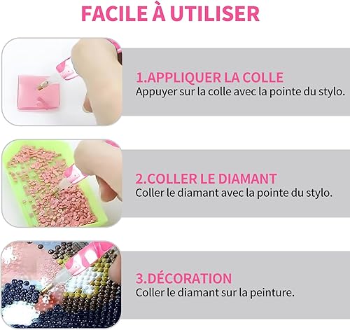 Yuiturt Stylo Diamant avec 7 Forets Diamantés, Accessoires Complets pour Broderie Diamant et Diamond Painting, Kit Loisirs Créatifs pour Adultes et Enfants (Rose)