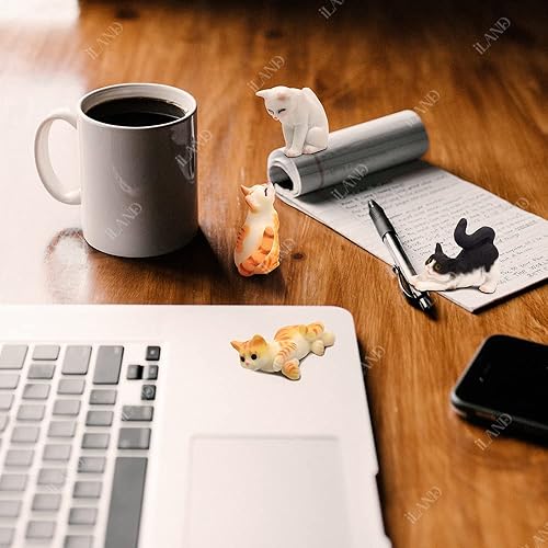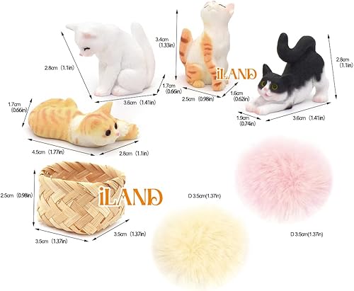 iLAND Figures décoratives de chat, avec accessoires de maison de poupée à l'échelle 1:12, décoration de gâteau, petite figurine de chat, cadeau de décoration pour chats