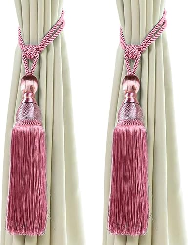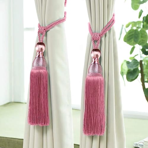Derbway 1 Paire Rideau Embrasse Rubans, d'embrasses de Rideau à Pompons, Rideau Corde Retenue pour la décoration de Rideau-Rose