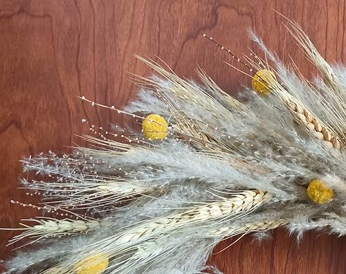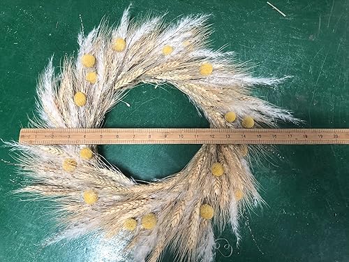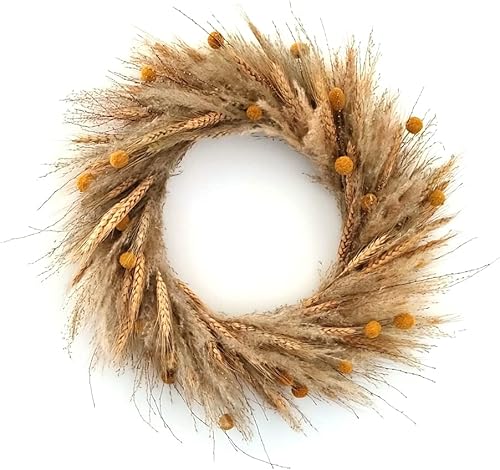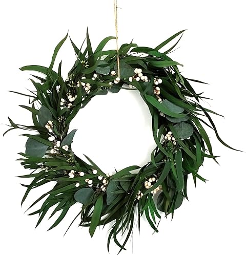 Couronne de fleurs naturelles préservées rustique de 40,6 cm, décoration murale de printemps et d'été, feuilles d'eucalyptus vertes naturelles, baies de suif blanches, décoration de fenêtre et de