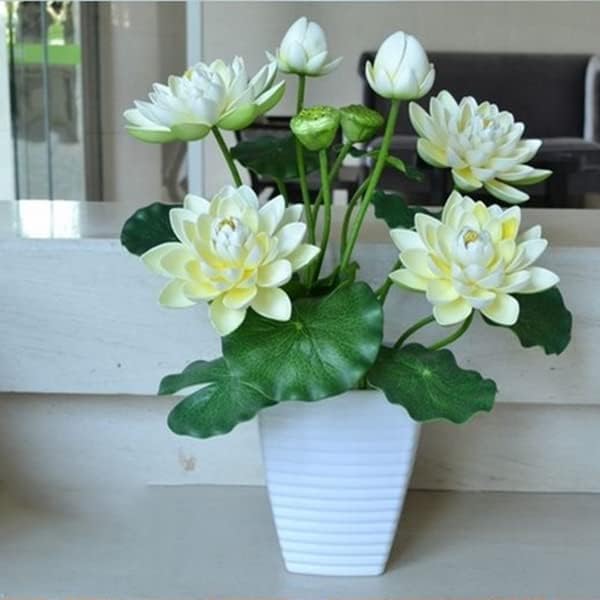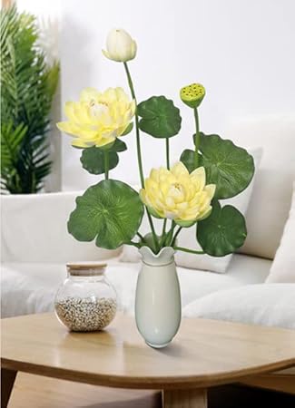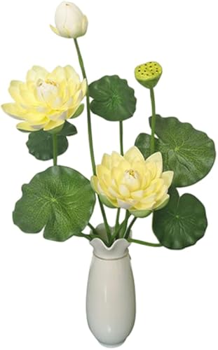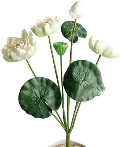 Bouquet de Fleurs de Lotus artificielles en Mousse de 64 cm - Fleurs artificielles en Soie - Fleurs artificielles pour la Maison, la décoration de fête de Mariage - Arrangement Floral (Blanc)