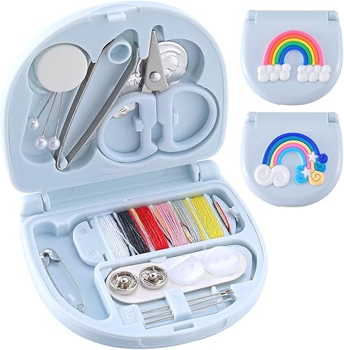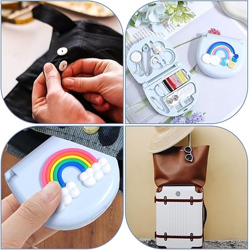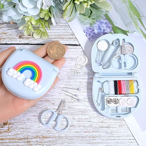 SUNNYCLUE 2 Mini Kit de Couture en Vrac Ensemble de Couture de Voyage Mini Fournitures de Couture en Plastique avec Outils de Couture Kit de Réparation d'urgence Arc en Ciel Portable Accessoires pour